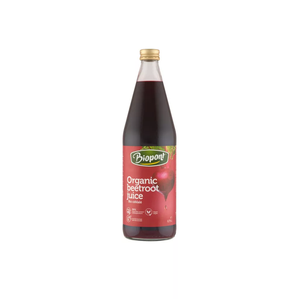 Lé-böjt kúra? Méregtelenítés? Ismerősen csengenek ezek a kifejezések? A Biopont Céklalé tökéletesen illik hozzájuk. Hogy miért? Először is tisztázzuk mi is a lé-böjt! Fontos tudni, hogy ez nem fogyókúra, hanem a szervezet méregtelenítésének, megtisztításának egy módja! A kúra során szilárd tápanyagokat nem, csak vizet, gyógyteákat, zöldség-, illetve gyümölcsleveket szabad fogyasztani. A cékla magas kálium, magnézium, vas és vitamintartalma mellett előnyei közé tartozik, hogy hasznos szénhidrátok, fehérjék és rostok is megtalálhatóak benne. Ezen felül kiváló antioxidáns, folsavakban és természetes flavonoidokban is gazdag. Rázd fel jól és már kezdheted is a méregtelenítést egy pohár ízletes céklalével!Összetevők: céklalé* 99%, acerola cseresznyevelő* 1%.Átlagos tápérték 100g termékben:Energia: 177kJ / 42Kcal Zsír: 0,5g Amelyből telített zsírsavak: 0,1g Szénhidrát: 9,2g Amelyből cukrok: 9,2g Rost: -g Fehérje: 1g Só: 0,13g