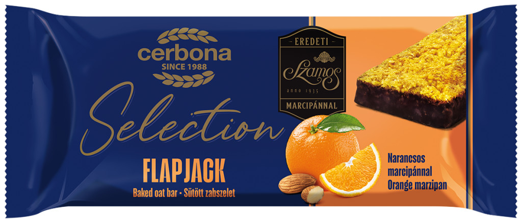 Összetevők: lapított zabpehely 31%, margarin [növényi zsírok (pálma, kókusz), növényi olaj (repce), víz, emulgeálószerek (zsírsavak mono- és digliceridjei), étkezési só, aroma, étkezési sav (citromsav), színezék (karotinok)], narancsos marcipán 14% [narancshéj készítmény 38% (narancshéj 51%, glükóz-fruktóz szörp, cukor, citromlé koncentrátum), mandula 25%, cukor, kakaóvaj, víz, glükózszirup, tartósítószer (kálium-szorbát), nedvesítőszer (invertáz)], cukor, kakaós bevonómassza 11% [cukor, teljes mértékben hidrogénezett növényi zsírok (kókusz, pálma) változó arányban, zsírszegény kakaópor 15,5%, növényi zsírok (kókusz, pálma) változó arányban, emulgeálószer (szójalecitin), vanillin], oligofruktóz, glükóz-fruktóz szörp, zabpehelyliszt 2,7%, emulgeálószerek (glicerin, szójalecitin), aromák, tartósítószer (kálium-szorbát), antioxidáns (alfa-tokoferol). Tojást, tejet és egyéb dióféléket tartalmazhat.