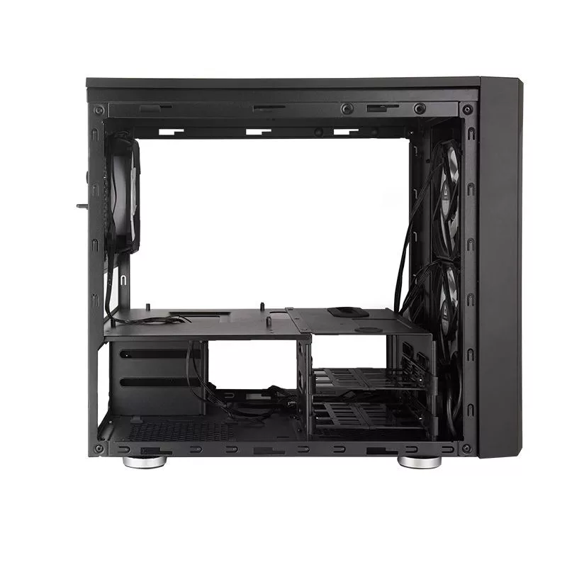 microATX, Black, 2x3,5", 4x2,5", 2xUSB2.0, 2xUSB3.0, Audio, Táp nélkül, 398x273x345mm, Tempered glass window, RGB, Gamer
