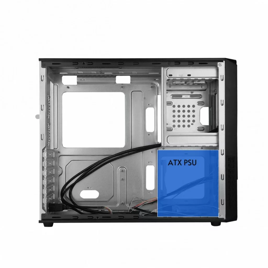 ATX, Black, 1x5,25", 2x3,5", 2x2,5", 2xUSB3.2, Audio, Táp nélkül, 433x166x373mm, kártyaolvasó