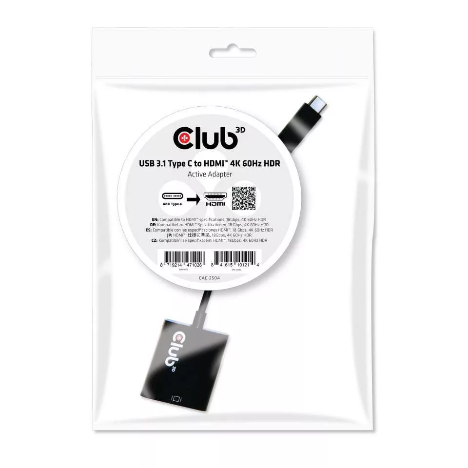 Club3D USB 3.1 Type C to HDMI 2.0 UHD 4K 60Hz Active Adapter