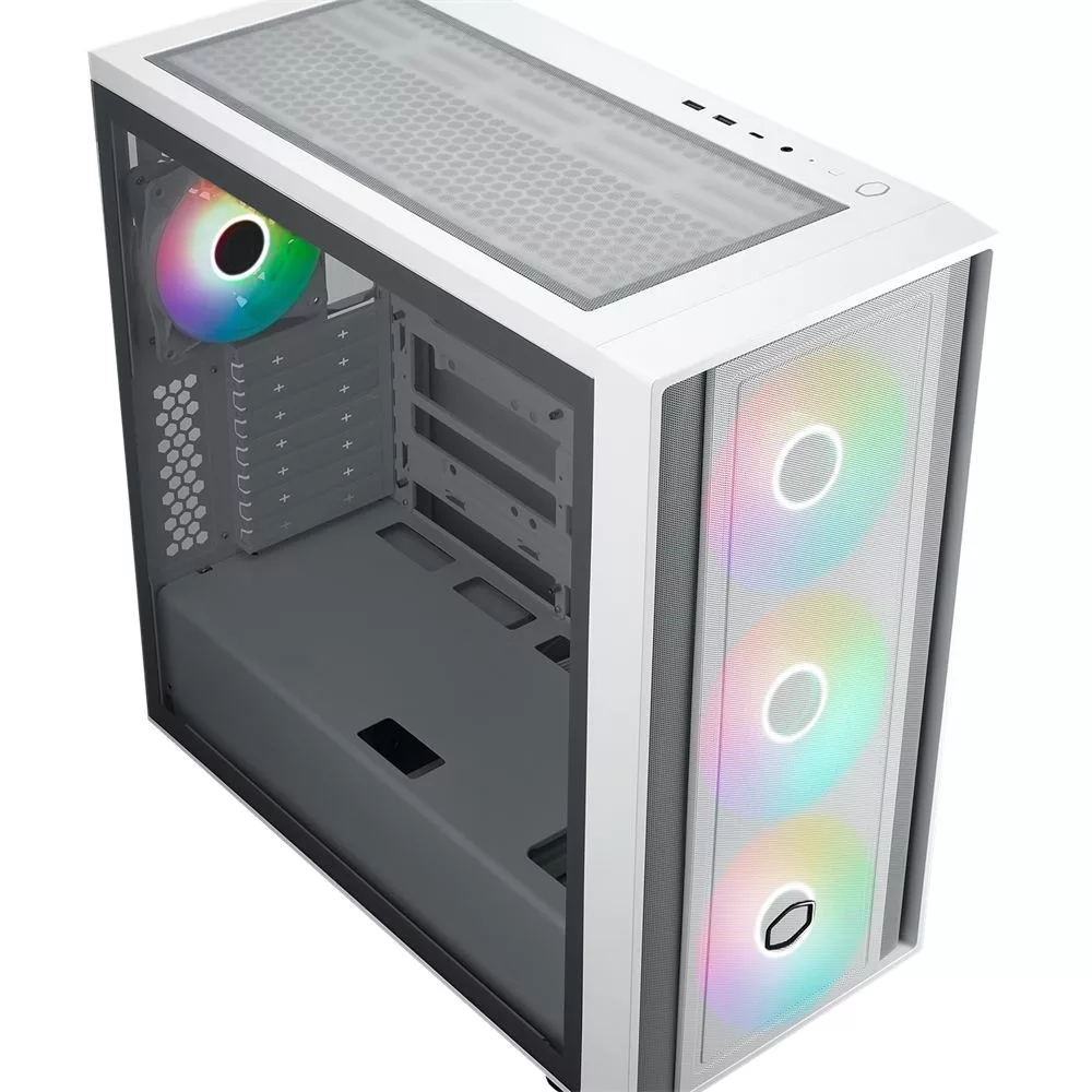 ATX, White, 2x3,5", 2x2,5", 2xUSB3.2, 1xUSB Type-C, Audio, Táp nélkül, 465x230x465mm, Ventilátor:3x14cm, 1x12cm, Tempered glass window, RGB, Gamer