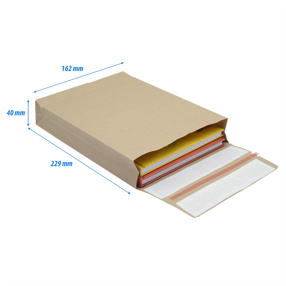 CSOMAGKÜLDŐ WEBSHOP TASAK 162X229X40MM, ERŐS KRAFT PAPÍRBÓL 250 DB/DOBOZ, E-GREEN BARNA