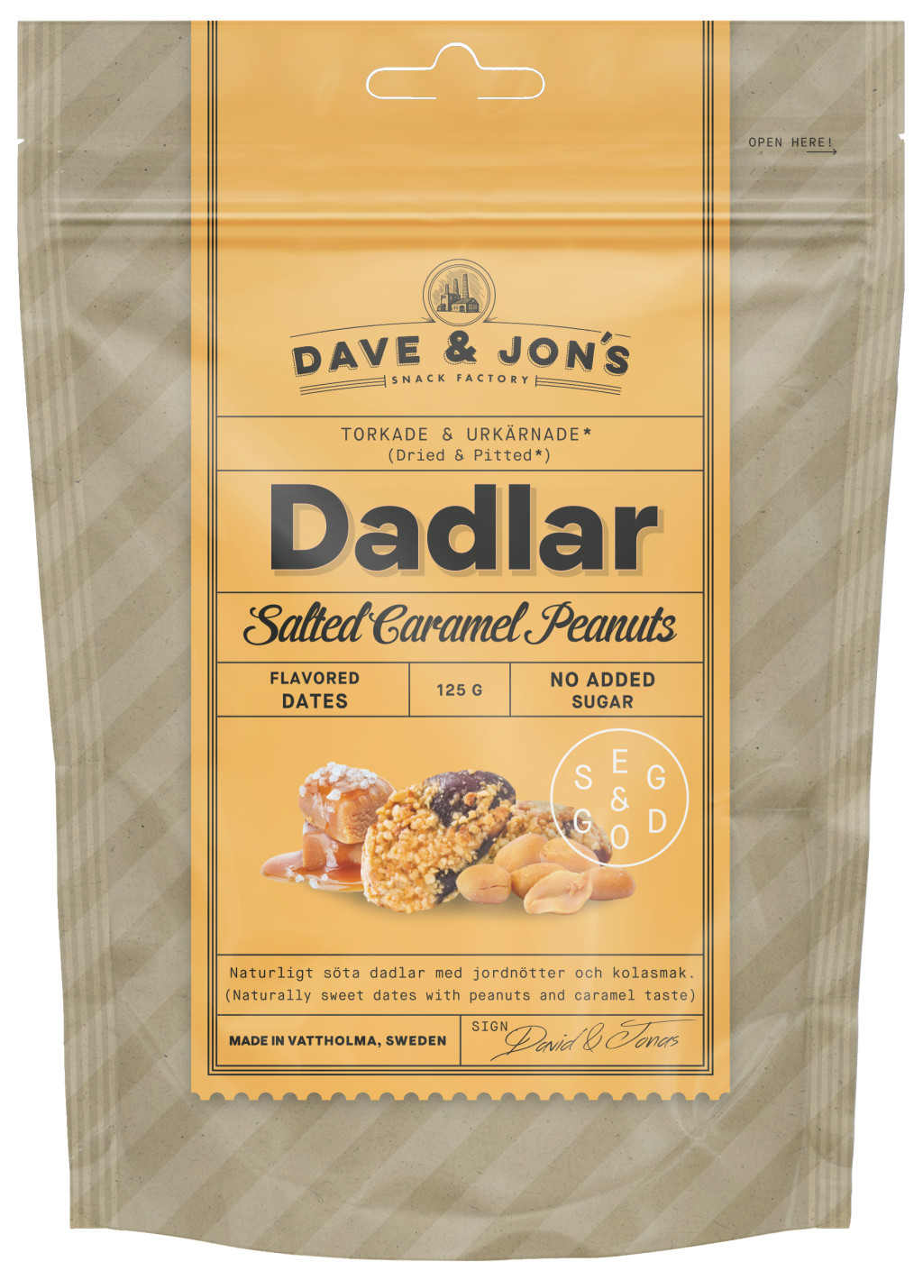 Datolya snack kicsiknek és nagyoknak Svédországból. Mag nélküli ízesített datolya sós karamell ízben, földimogyoró darabokkal, amely új és egészségesebb alternatívát kínál a nassolni vágyóknak. Hozzáadott cukor nélkül készül, az édességét a datolya adja. A visszazárható csomagolása hosszan megőrzi a frissességét. Pálmaolaj mentes.