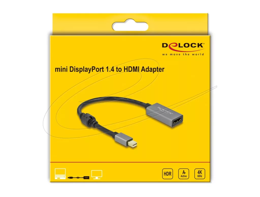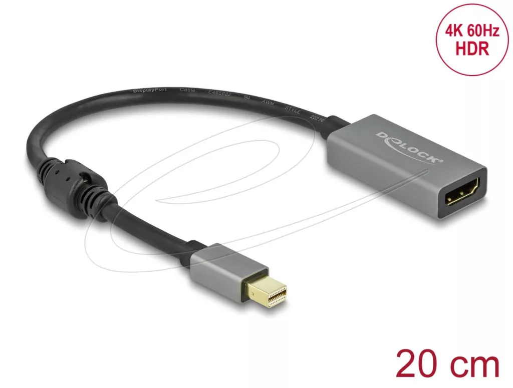 Ezzel a Delock adapterrel HDMI-monitort csatlakoztathat a rendszeréhez egy szabad mini DisplayPort-csatolón keresztül. Az adapter legfeljebb 4K Ultra HD (60 Hz) felbontást támogat és visszamenőlegesen kompatibilis a Full-HD 1080p szabvánnyal.