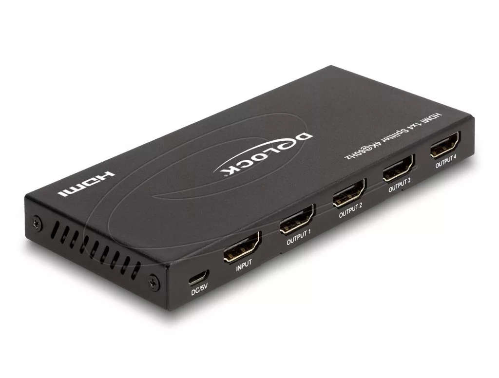 HDMI-jelet fogad egy asztali vagy hordozható számítógépről, és a jelet négy csatlakoztatott kijelzőre osztja el. Ennek köszönhetően négy HDMI-monitor működtethető egy HDMI-csatlakozóval.