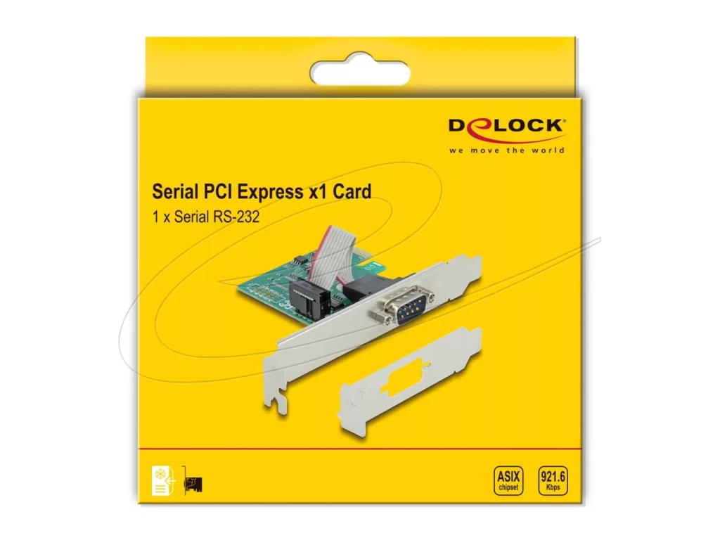 A Delock PCI Express kártya egy külső soros porttal bővíti ki a számítógépét. Különböző eszközök, úgy mint szkenner, protokoll átalakító vagy IoT elemek, kapcsolhatók ehhez a kártyához.