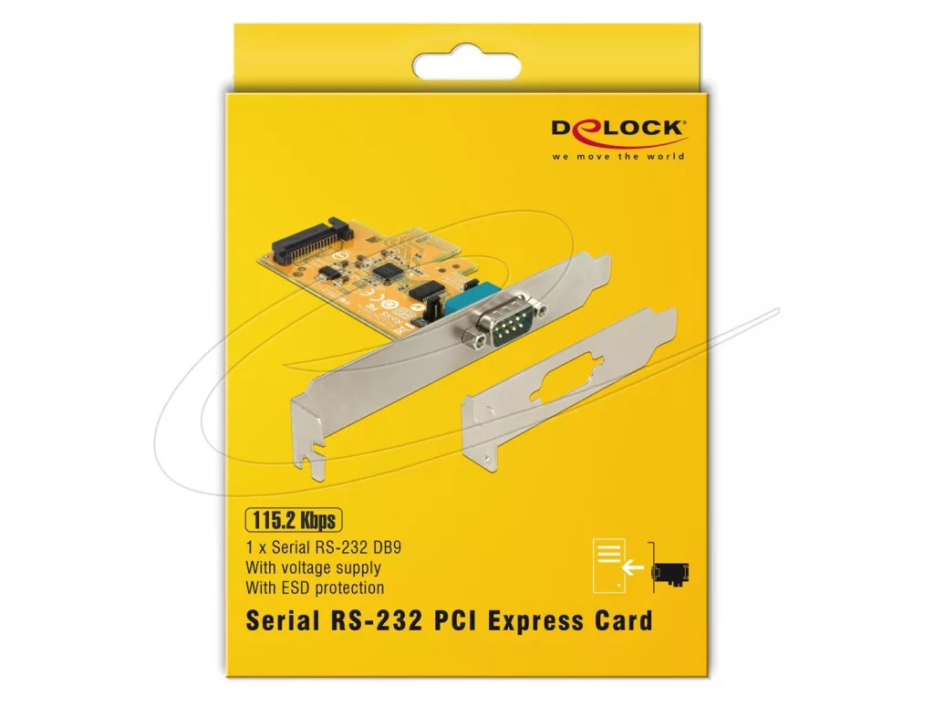 A Delock PCI Express kártya egy külső soros porttal bővíti ki a számítógépét. A csatlakoztatott eszközök számára igény szerint 5 V vagy 12 V feszültséget biztosíthat. A tartozékként kapott alacsony profilú konzollal egy Mini-PC-be is behelyezheti a PCI Express-kártyát.