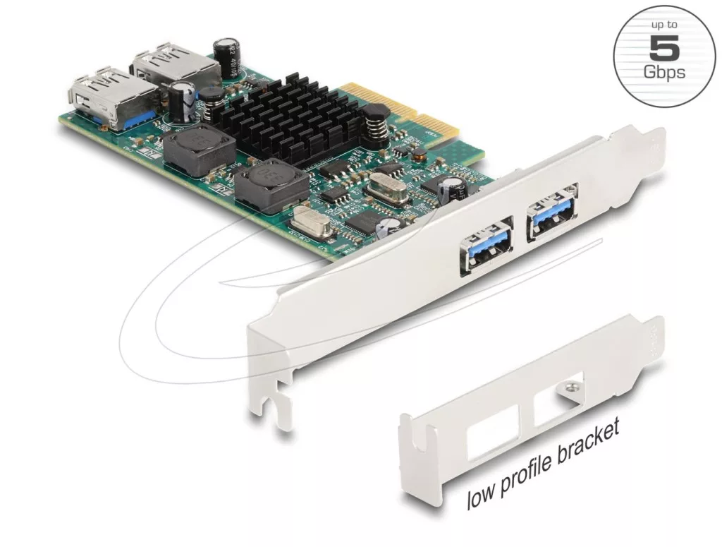 DeLock PCI Express x4 Card to 2xExternal USB 5Gbps Type-A + 2xInternal USB 5Gbps Type-A Dual Channel Low Profile Form Factor