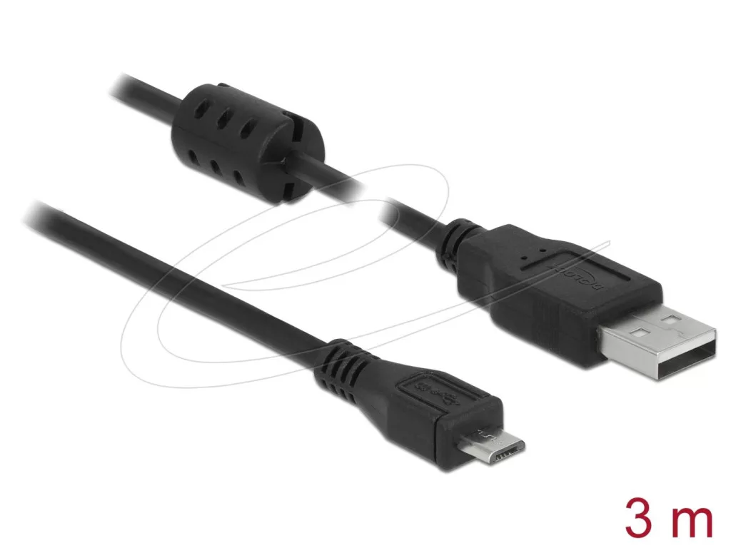 USB kábel, USB-A, microUSB-B, USB2.0, Male/Male, 3m, Black, Töltő és adatkábel