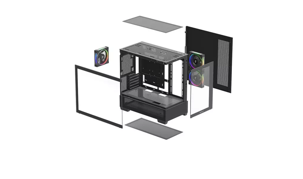 ATX, Black, 2x3,5", 3x2,5", 2xUSB3.0, 1xUSB Type-C, Audio, Táp nélkül, 451x437x235mm, Ventilátor:3x12cm, Tempered glass window, RGB, Gamer