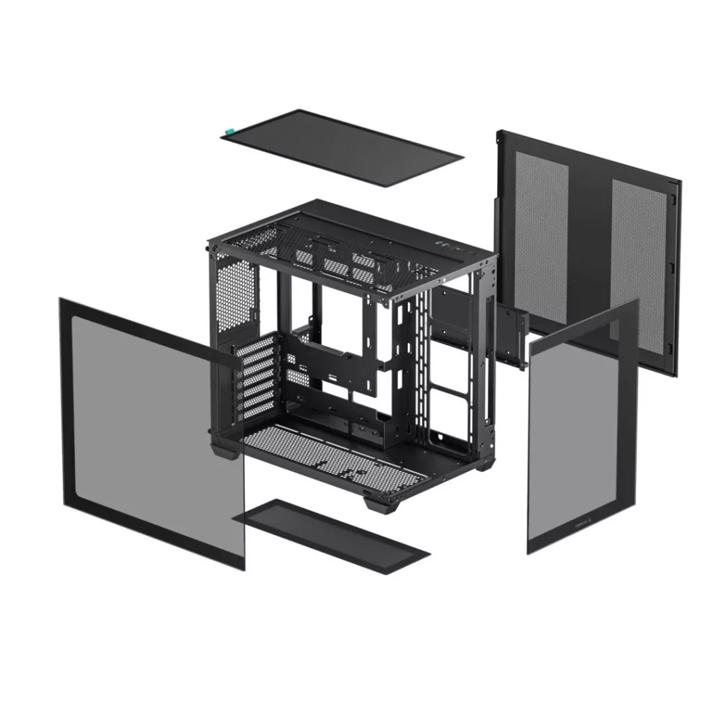 ATX, Black, 2x3,5", 3x2,5", 1xUSB2.0, 2xUSB3.0, Audio, Táp nélkül, 440x285x399mm, Tempered glass window