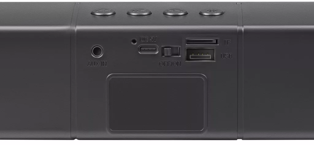 Hordozható hangszóró-soundbar Bluetooth-funkcióval. Ez az univerzális eszköz alkalmas számítógéphez, tévéhez és kültéri használatra is. A beépített 1200 mAh-s akkumulátor lehetővé teszi a hangszóró használatát anélkül, hogy áramforráshoz kellene kötni. Gyönyörű háttérvilágítás az egész előlapon, lenyűgöző hangminőség kedvenc filmjeihez és zenéihez otthon vagy a szabadban.