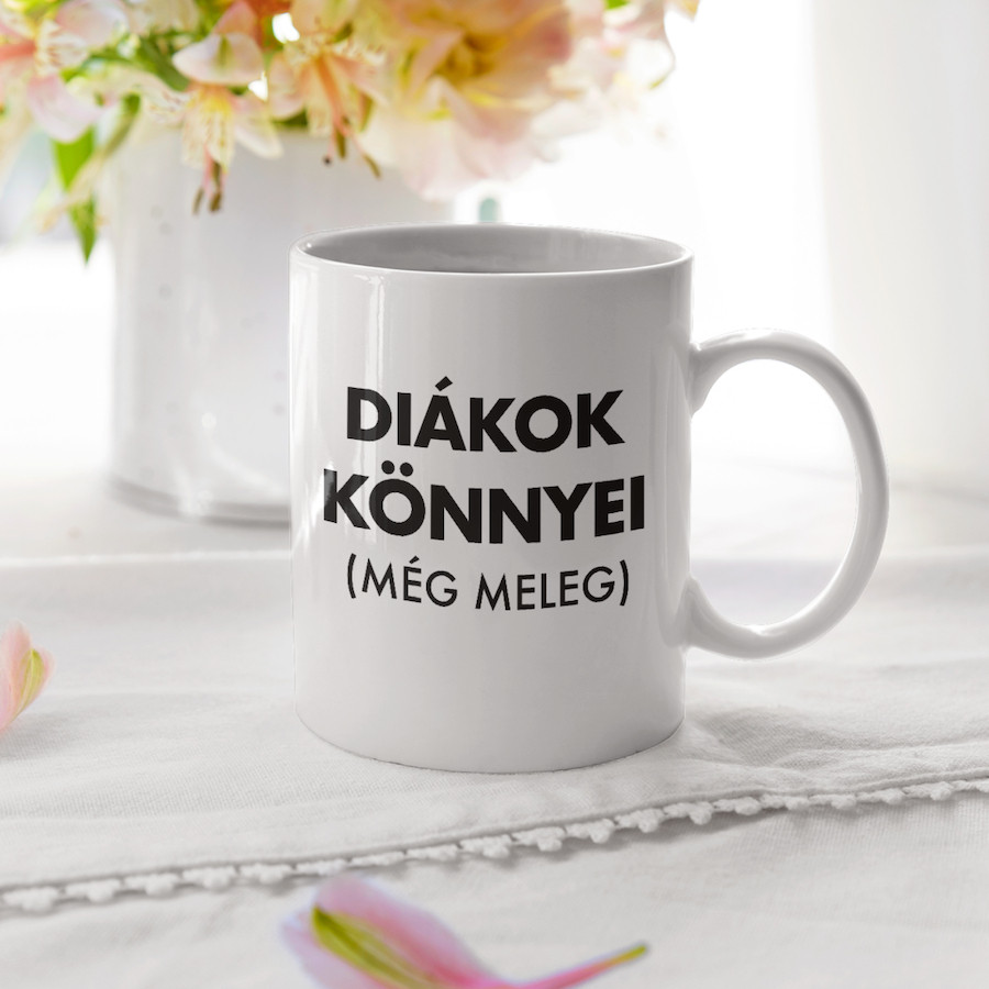 Diákok Könnyei fehér bögre.Bemutatjuk nektek a saját gyártású bögréinket!Rengeteg egyedi minta közül választhatod ki azt, amelyik a legjobban illik hozzád, vagy ahhoz a személyhez, akit meg szeretnél ajándékozni!De tényleg! Annyira sok ötletünk van, hogy bátran állítjuk azt, hogy biztosan megtalálod a tökéletes képpel és szöveggel ellátott bögrét!A kerámia bögrék 300 ml űrtartalommal rendelkeznek, mosogatógépben is moshatók, ráadásul mikrózhatók is! Sőt az egyik legjobb dolog bennük az, hogy két oldali nyomattal láttuk el őket, így a bögre mindkét oldalán láthatod majd a mintát!Csak tudj majd választani közülük! De ér egyszerre többfélére is beruházni! Hisz tudjuk jól, hogy bögréből sosem elég!Minőségi kivitelezés, dizájnos megjelenés jellemezi az összes egyedi tárgyunkat!Űrtartalom: 300 mlAnyag: KerámiaMosogatógépben moshatóMikrózhatóKét oldali nyomat. A nyomat a bögre mindkét oldalán látható.