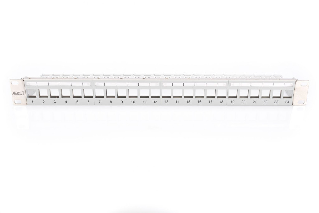 Keret kapacitása:1U, Portok száma:24db, Szerelt csatlakozók:Nincs, Grey