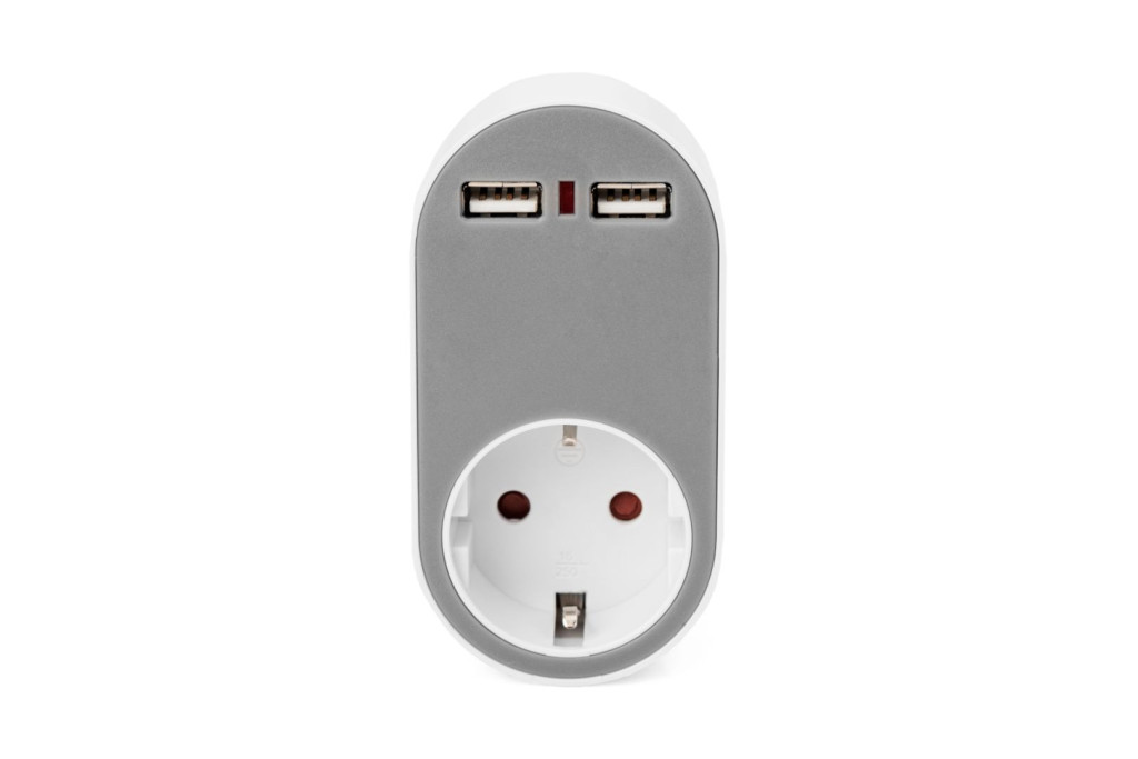 Digitus DA-70617 Universal USB Plug-in Charger with 2 x USB-A Sockets and Integrated Socket