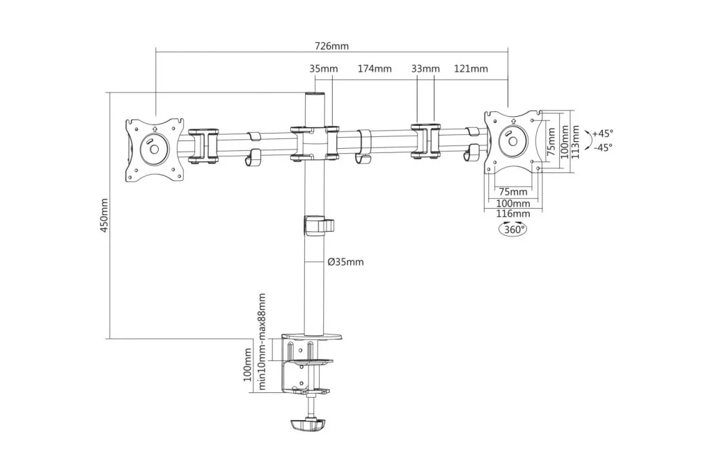 Digitus DA-90349 Universal Dual Monitor Stand With Clamp Mount Black
