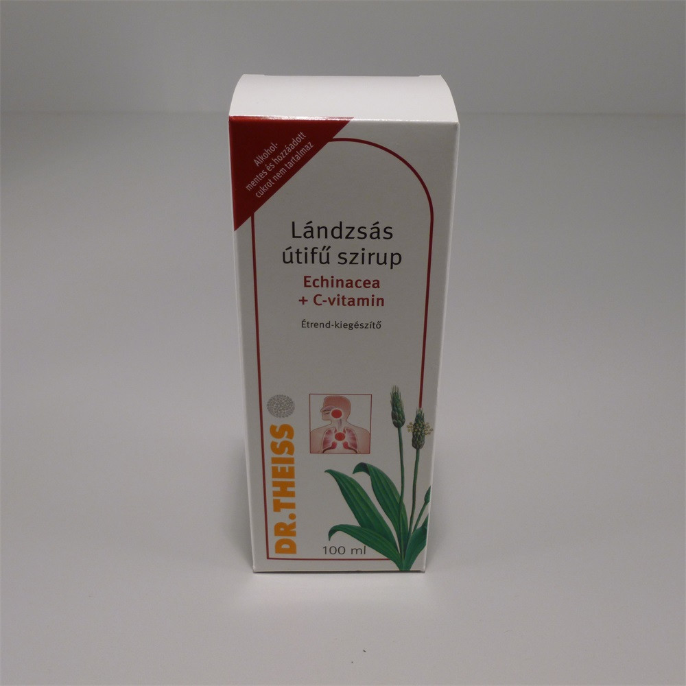 Dr. Theiss lándzsás útifű szirup + echinacea + C-vitamin. Alkoholmentes és hozzáadott cukrot nem tartalmaz. Jóízű segítség a torok és a légutak egészségének megőrzésére az őszi-téli meghűléses időszakban.