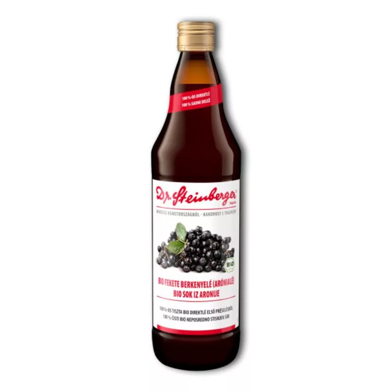 Kelet-Európa legjobb termőterületeiről gondosan válogatott illatos bio fekete berkenyét dolgoznak fel a Dr.Steinberger üzemében és varázsolják kiváló minőségű gyümölcslévé. A gyümölcsöket csak egyszer préselik, így valóban tiszta direktlé kerül az üvegekbe, ami megőrzi a fekete berkenye természetes anyagait.