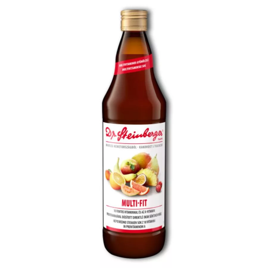 100%-os direktlé (nem koncentrátumból ), amely 11-féle gondosan összeválogatott gyümölcs nyersen préselt levéből készül, 10 vitaminnal és az A-vitamin provitaminjával dúsítva. Már napi egy pohár elfogyasztása biztosítja a napi szükségletet ezekből a fontos vitaminokból. Nem tartalmaz hozzáadott cukrot, íze mégis finom.
