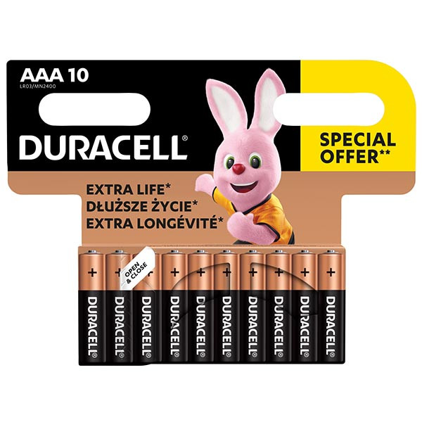 Megbízható energia minden nap a Duracell Basic sorozatából. Ez a AAA méretű alkáli elem ideális a legtöbb otthoni eszközhöz: távirányítók, órák, játékok és egyéb eszközök. A DL csomag 10 darab elemet tartalmaz, így hosszú ideig elegendő energiát biztosít.