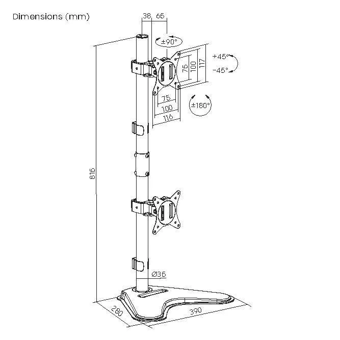 Az Equip 650128 17"-32" kettős függőleges monitor asztali állvány ideális megoldás olyan szakemberek számára, akik maximalizálni szeretnék az asztali helyet, miközben növelik a termelékenységet. Két monitor függőleges egymásra helyezésére tervezték, ez az állvány 17 és 32 hüvelyk közötti képernyőméreteket támogat. Állítható magassággal és dőlésszöggel rendelkezik, így a felhasználók megtalálhatják a kényelem és ergonómia szempontjából tökéletes betekintési szöget.