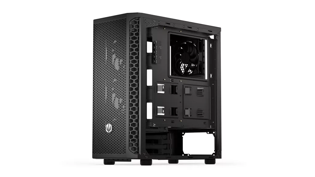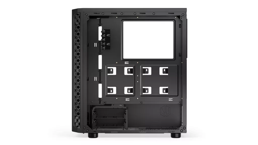 ATX, Black, 2x3,5", 2x2,5", 2xUSB3.2, Audio, Táp nélkül, 413x447x216mm, Ventilátor:4x12cm, Tempered glass window, Gamer
