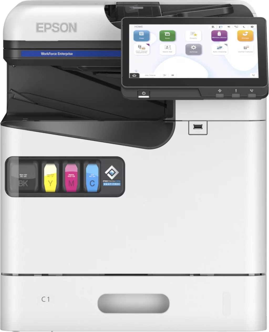 *Nyomtat, Beolvas, Másol, Faxol *Nyomtatási sebesség: ISO: 55 lap/perc mono/színes *Nyomtatási felbontás: 600 x 1.200 dpi (max. 600 x 2400 dpi) *Terhelhetőség: max. 384.000 oldal/hó, ajánlott: 30.000 oldal *Nyomtatás PC-ről, MAC-ről, Hálózatról, USB-ről, opcionálisan rendelhető Wi-Fi egységgel mobileszközökről is (WiFi Direct) *Automatikus kétoldalas nyomtatás (DUPLEX) *Papírbemenet alapkiépítésben: 500 lapos tálca + 100 lapos többfunkciós tálca (opcionális tálcák, asztalok: 500 lapos papírtálca, 2 x 500 lapos papírtálca, Cabinet) *Kiadó papírtálca kapacitása: 300 lap *Szkennelési sebesség: 50 oldal/perc *Szkennelés felbontása: 600 dpi x 600 dpi *Szkennelés e-mailben küldéshez, FTP-n küldéshez, hálózati mappába, USB-re, Számítógépre (Epson Document Capture Pro) *Kiadvány-formátumok: BMP, JPEG, TIFF, multi-TIFF-be, PDF, PDF/A, PNG, PDF multi *Fekete-fehér és színes faxolás *Csatlakozók: Ethernet interfész (1000 Base-T/ 100-Base TX/ 10-Base-T), USB 3.0, Wi-Fi Direct (opcionális), USB-csatlakozó, Vezeték nélküli LAN IEEE 802.11a/b/g/n/ac (WiFi 5) (opcionális) *Mobil és felhőalapú nyomtatási szolgáltatások: Apple AirPrint, Google Cloud Print, Mopria, Epson Smart Panel App, Epson Connect (Email Print, Remote Print Driver), Epson Connect (Email Print, Scan-to-Cloud)f *Papírformátumok: A4 (21.0x29,7 cm), A5 (14,8x21,0 cm), A6 (10,5x14,8 cm), B5, B6, Letter, HLT, Executive, 20 x 25 cm, C4 (Boríték), C5 (Boríték), C6 (Boríték), DL (boríték) *Memória: 8.192 MB *LCD kijelző: Színes, érintőképernyős, 25,7 cm átlójú *Emulációk: PCL5c, PCL5e, PCL6, PostScript 3, ESC/P-R, ESC/Page