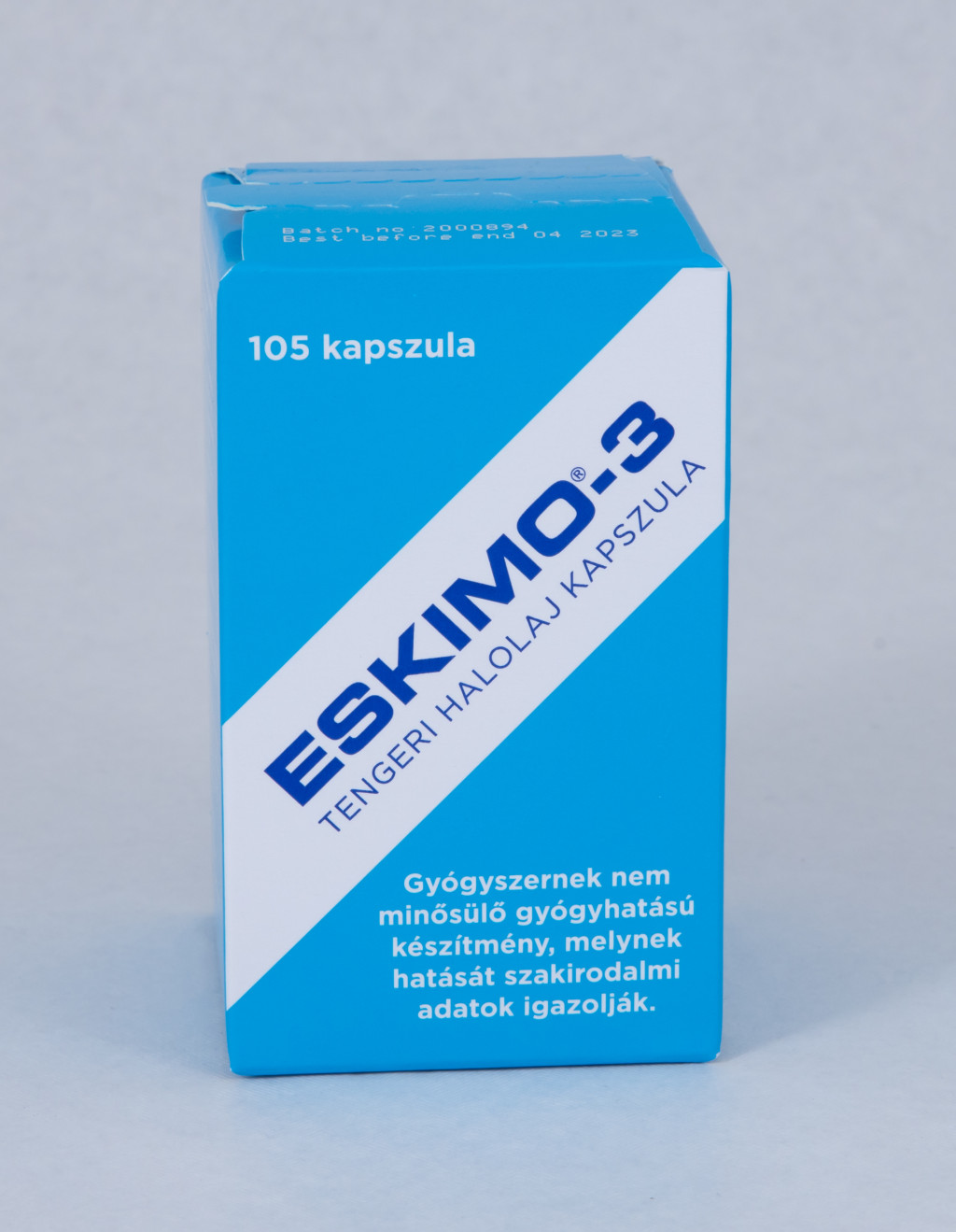 Eskimo-3 omega-3 EPA és DHA tartalmú tengeri halolaj kapszula. Szívritmuszavar, szívinfarktus megelőzésére, szív és érrendszeri megbetegedések, az újbóli szívinfarktus rizikójának csökkentésére, vérrögképződés, érelmeszesedés, magas vérnyomás kiegészítő kezelésére.