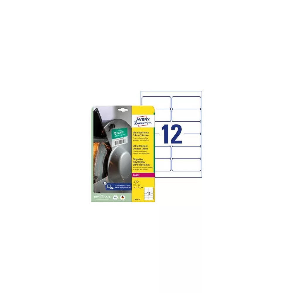 ETIKETT CÍMKE, 99,1 X42,3MM, ULTRA ELLENÁLLÓ 12 CÍMKE/ÍV, 10 ÍV/DOBOZ, AVERY FEHÉR