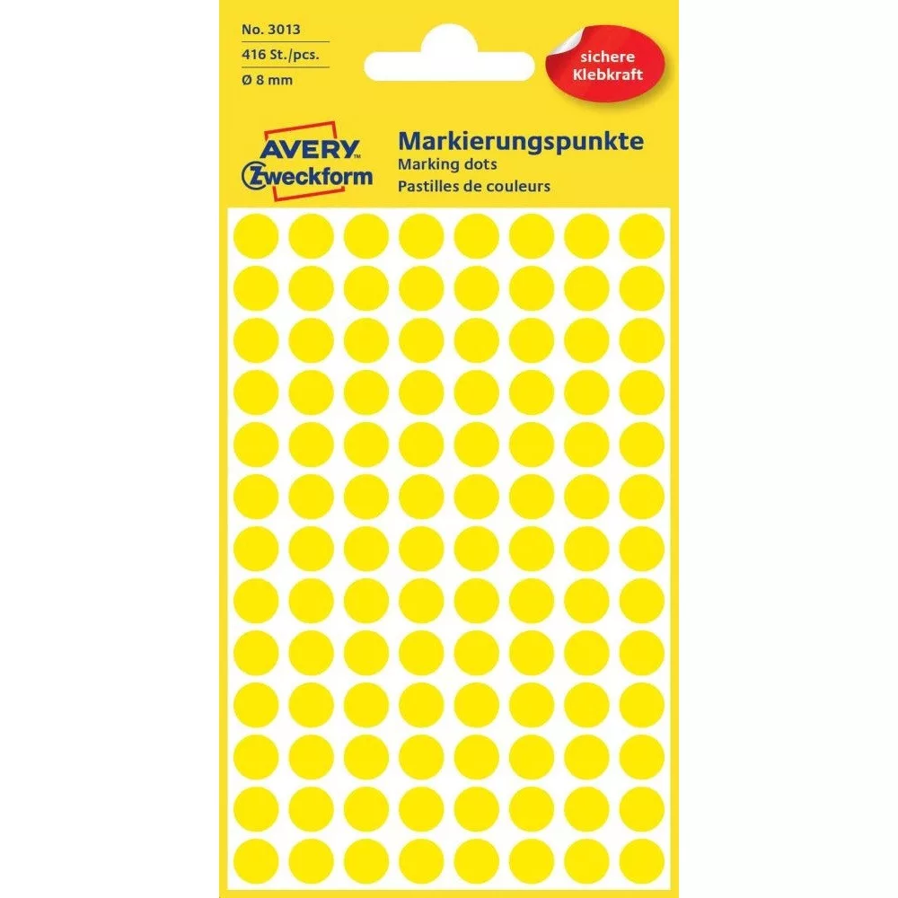 Címke mérete: 8 mm Csomag tartalma: 416 jelölőpont/csomag Az AVERY ZWECKFORM jelölőpontok tökéletesek jelölésre, rendszerezésre, tervezésre, iratrendezésre. Katalóguskód: 25363