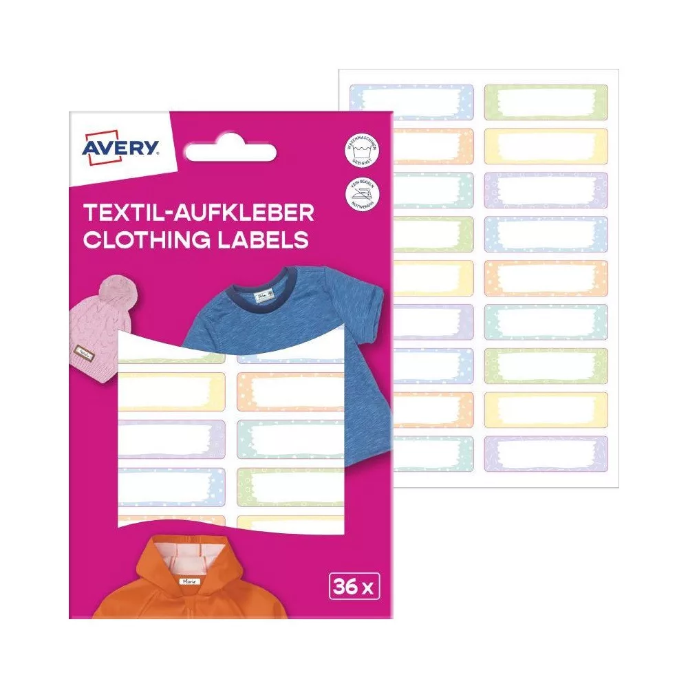 ETIKETT RUHACÍMKE, 45 X 13 MM 36 CÍMKE/2 ÍV, AVERY PASZTELL