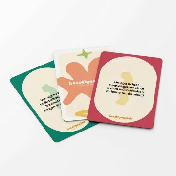 Szó szerint. A játékban található elgondolkodtató, egymás szemszögére, látásmódjára és a saját tulajdonságainkra reflektáló kérdések korlátlan lehetőséget nyújtanak önmagunk és a többiek megismerésére.A lényeg a kapcsolódás, a közös gondolkodás, egymás és önmagunk szórakoztató megismerése a buszon, a munkában, Indiában, a közértben vagy a nappaliban. Nem számít a kor, a napszak, az időjárás, hogy van-e azonos hobbitok, csak a játék öröme, és a játékosok őszintesége.Mert beszélgetni bárhol, bármikor, bárkivel jó!