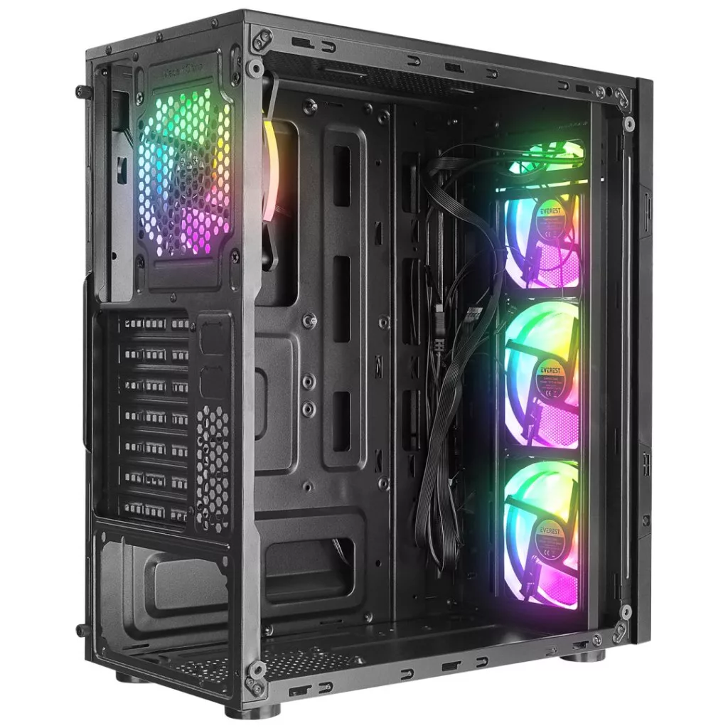 ATX, 250W, Black, 2x3,5", 2x2,5", 2xUSB2.0, 1xUSB3.0, Audio, Ventilátor:4x12cm, Tempered glass window, RGB, Gamer