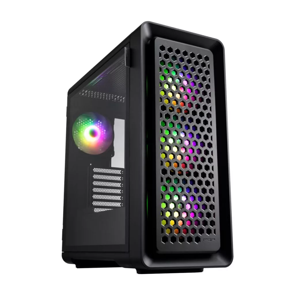E-ATX, Black, 3x3,5", 4x2,5", 2xUSB3.0, 1xUSB Type-C, Audio, Táp nélkül, 500x230x544mm, Ventilátor:4x14cm, Tempered glass window, RGB, Gamer