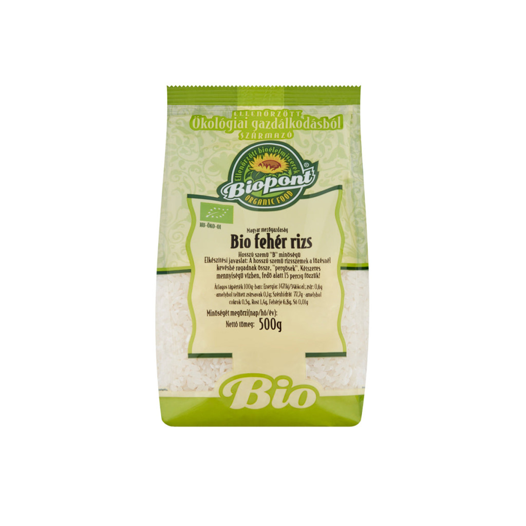 A rizst nyilván Neked sem kell bemutatnunk, hiszen mindenki ismeri ezt az ételt. Te is unod, hogy mindig összetapadnak a rizsszemek? Szeretnéd rizsből is a legjobb bio minőséget adni családodnak? Akkor válaszd a Biopont hosszú szemű fehér rizst! A hosszú szemű rizs a főzés során nem tapad össze, pergős marad, így kiváló köret, vagy rizottó készíthető belőle! Miért érdemes sok rizst fogyasztanod? A rizs nem véletlenül a második legelterjedtebb növényi eredetű ételünk a búza után. A tányérunkra kerülő fehér rizs több lépésen esik át, míg elnyeri ezt a formáját. Több takaróréteg is fedi a belső fehér rizsszemeket, amiket eltávolítanak vagy lekoptatnak. A koptatás során a tápanyagok egy része ugyan elveszik, ez mégsem kártékony művelet. Ezáltal a korpában található zsírmennyiség is távozik, amelynek köszönhetően a fehér rizs hosszabb ideig eltartható, mint barna testvére. A rizsben található szénhidrát nagy százalékban keményítő, ezen kívül nagy mennyiségű fehérjét, B-, E- és K-vitaminokat, valamint ásványi anyagokat és nyomelemeket is tartalmaz. Reggelire, ebédre vagy vacsorára az előételektől a desszertekig számos formában elkészítheted! Te hogyan szereted a legjobban?Összetevők: fehér rizs*, B minőségi osztályúÁtlagos tápérték 100g termékben:Energia: 1471kJ / 346Kcal Zsír: 0,6g Amelyből telített zsírsavak: 0,1g Szénhidrát: 77,7g Amelyből cukrok: 0,5g Rost: 1,4g Fehérje: 6,8g Só: 0,01g