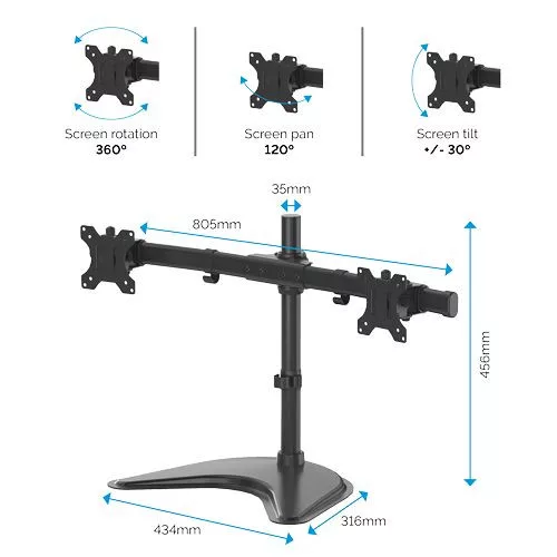 • Növeli a termelékenységet a két képernyős munkavégzéssel - két képernyő tartására alkalmas, egyenként legfeljebb 8 kg-os és 27"-os képernyővel.