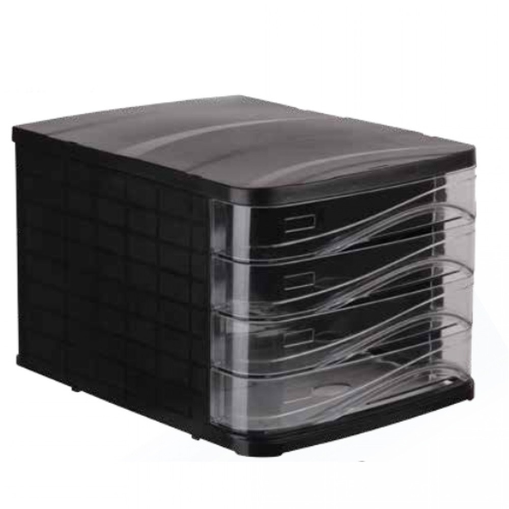 IRATTÁROLÓ MŰANYAG 4 FIÓKOS FEKETE, VÍZTISZTA FIÓKOKKAL