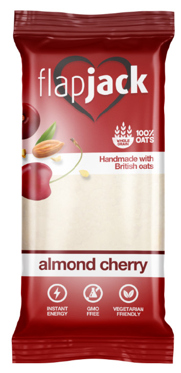 Meggy ízben, szeletelt mandulával és kandírozott cseresznye darabokkal, fehér bevonóval a tetején készül. A FlapJack szeletek magas zab- és rosttartalmának köszönhetően kiváló kiegészítője az egészséges táplálkozásnak. Vegetáriánusok számára is ajánlott.