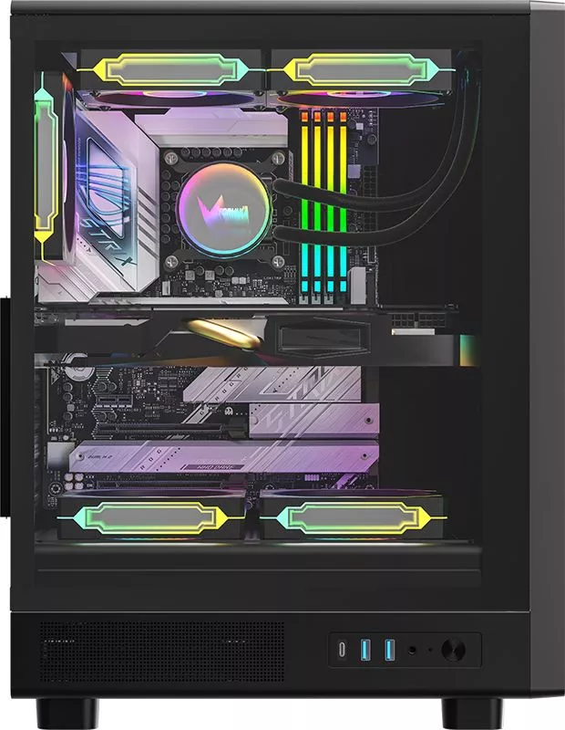 ATX, Black, 1x3,5", 1x2,5", 2xUSB3.0, 1xUSB Type-C, Audio, Táp nélkül, 445x330x218mm, Ventilátor:4x12cm, Tempered glass window, Gamer