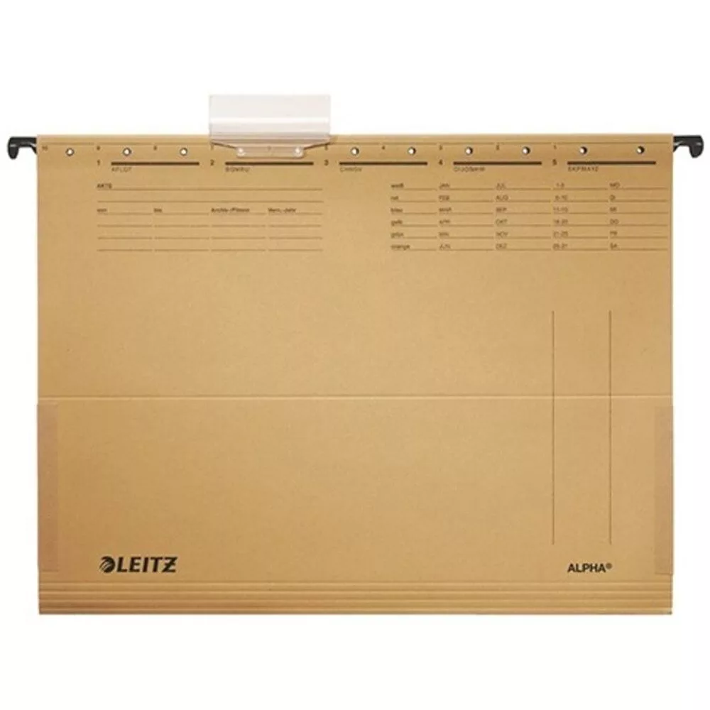 Minőségi függőmappa V-alakú, oldalt zárt kialakítással, mely megóvja a függőmappa tartalmát a kieséstől - lyukak az elő-és hátlapon lefűzőcsík rögzítéséhez - 100%-ban újrahasznosított kartonból, Blue Angel minősített - zsebekkel a dokumentumok biztonságos tárolásához - a nagy méretű, erős, műanyag címketartóra akár 4 sorban is írhatunk - erős és tartós fém fülek - nátronkarton, 250 g-os - 6 cm hosszú címketartó, változtatható címkeállás - fesztávolság: 330 mm - méret: 348x260 mm Katalóguskód: 35905