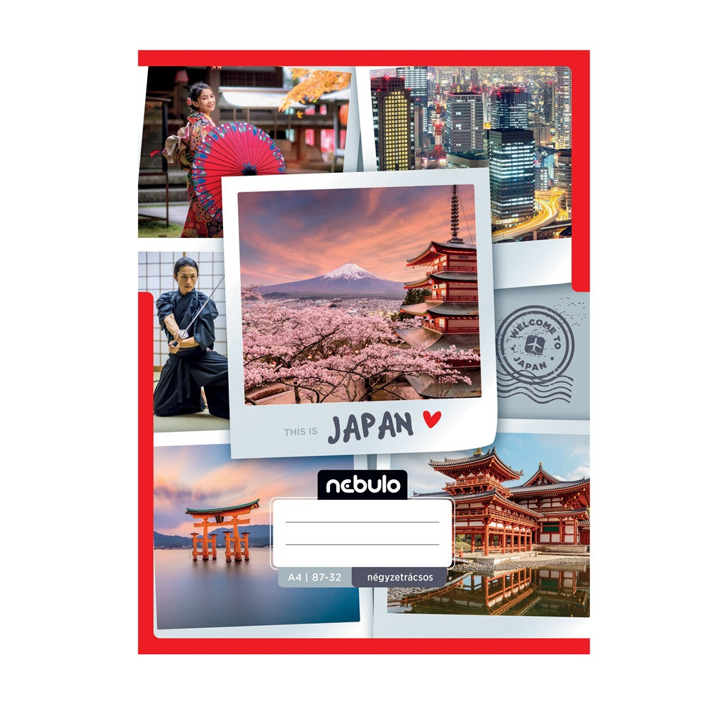 Füzet, A4, kockás, 87-32, ország-város minták, 12 db/csomag Nebulo