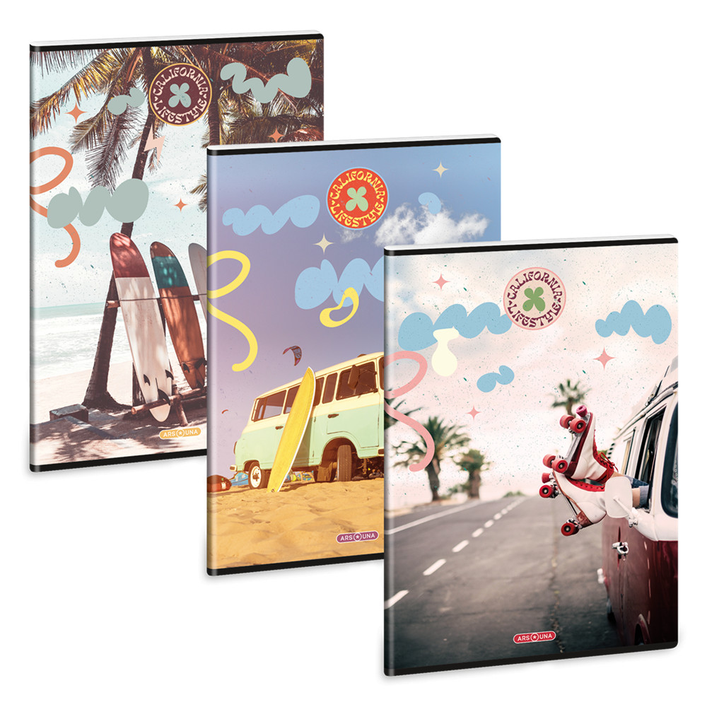 FÜZET ISKOLAI A4, 40LAP, VONALAS ARS UNA CALIFORNIA LIFESTYLE 10DB/CSOMAG