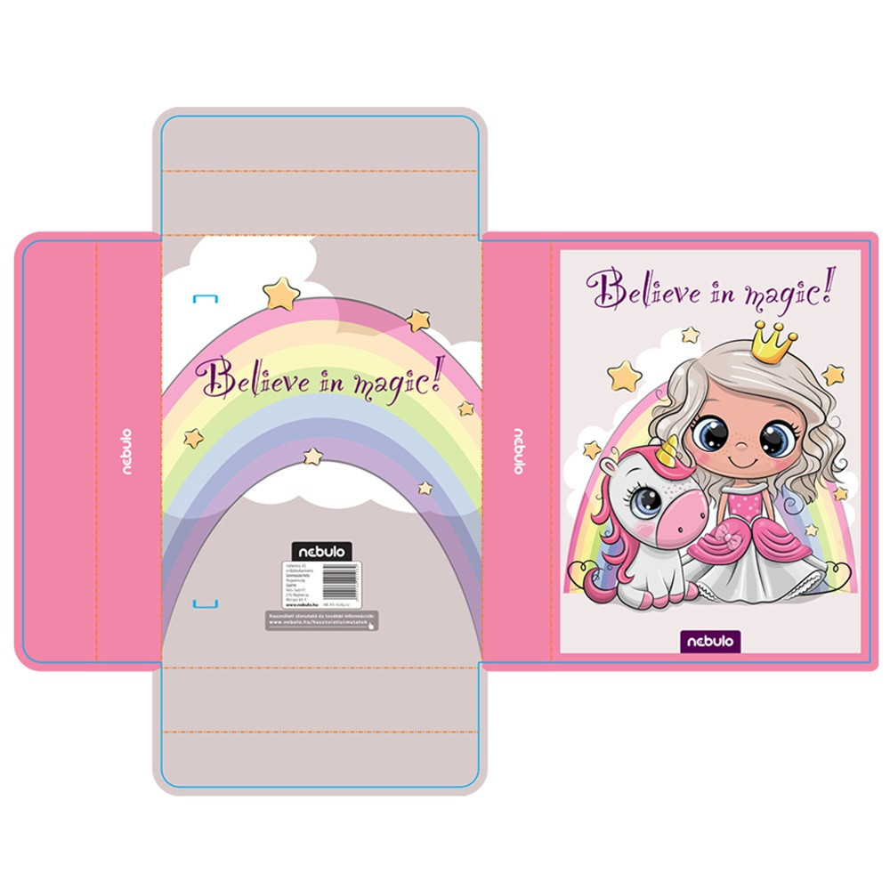 FÜZETBOX A5, HULLÁMKARTON, KIRÁLYLÁNY/UNIKORNIS, NEBULO