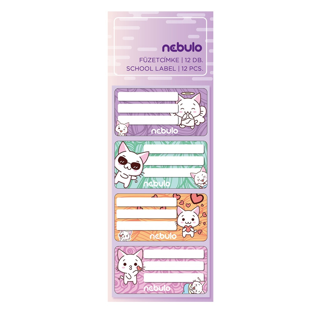 FÜZETCÍMKE 12DB-OS, CICA, VEGYES MINTÁK, NEBULO