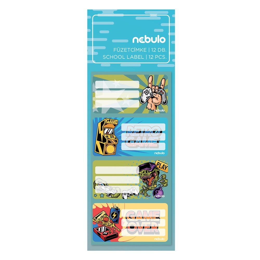 FÜZETCÍMKE 12DB-OS, GAMER, VEGYES MINTÁK, NEBULO