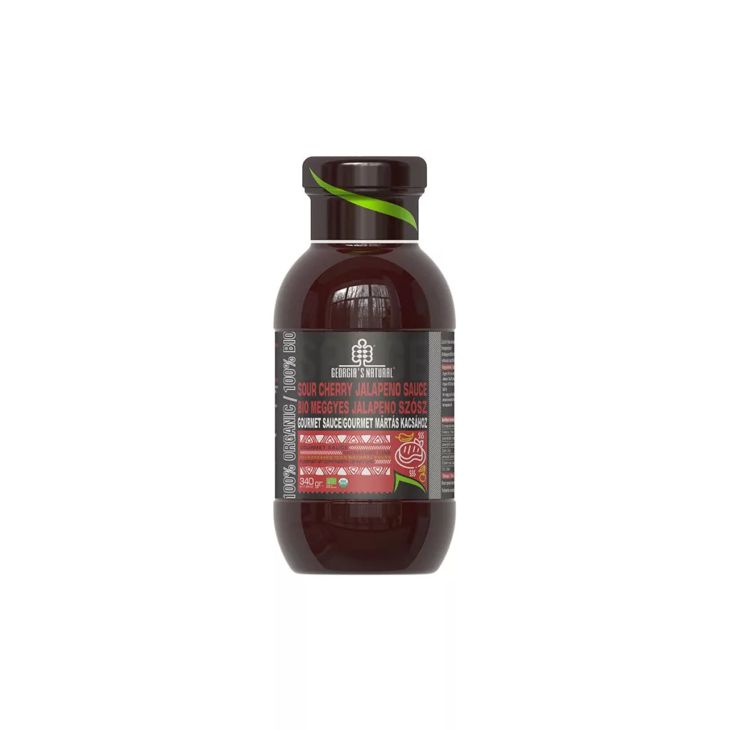 GN Bio Meggyes Jalapeno Szósz 340gTermékeink glutén-, kazein-, zsír-, GMO- és stabilizátormentesek.Nem tartalmaznak hozzáadott cukrot, tartósítószert, színezéket, aromát, illetve hozzáadott vizet sem.Ne használja a terméket, ha felpúposodást (duzzadást) tapasztal, ha bármilyen fizikai sérülés látható, ha a címkén feltüntetett tárolási körülményeket nem tartották be, vagy ha a lejárati idő már eltelt.Hűvös, közvetlen napfénytől védett helyen tárolandó. Felbontás után hűtőszekrényben tartandó, és legfeljebb 5 napon belül fogyasztandó.Csecsemők, várandós nők, valamint legyengült immunrendszerű személyek esetében fokozott óvatosság javasolt.Összetevők: bio meggy pép 70%, bio piros jalapeno paprika pép 20%, bio almalé koncentrátum 7%, bio kapor 1%, bio fokhagyma pép 1%, természetes só 1% Tápértékadatok100 g100 gEnergia (KJ/Kcal)419Kj/100kcalZsír0gebből telített zsírsavak0gSzénhidrát24gebből cukor22gRost1gFehérje2gSó1.3g