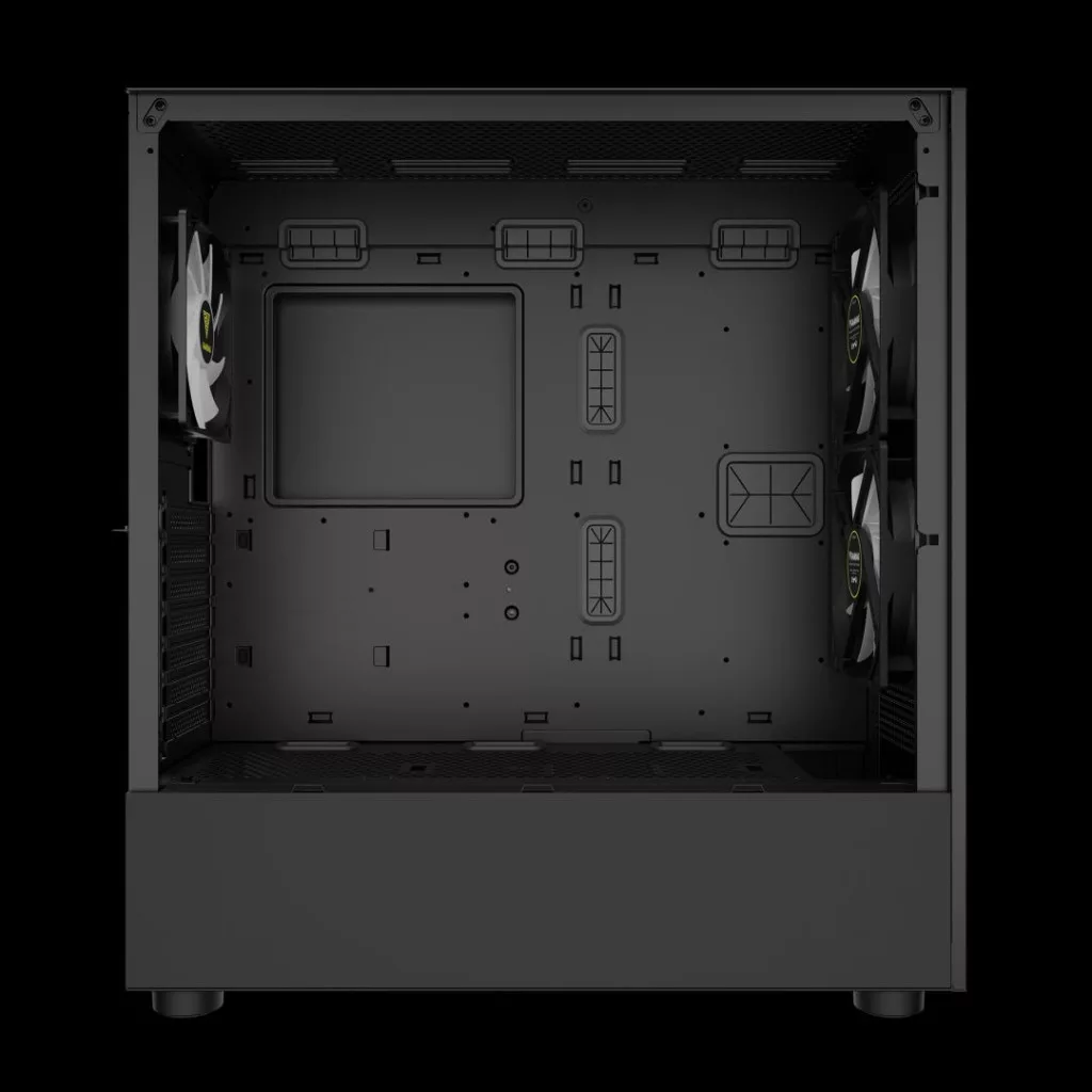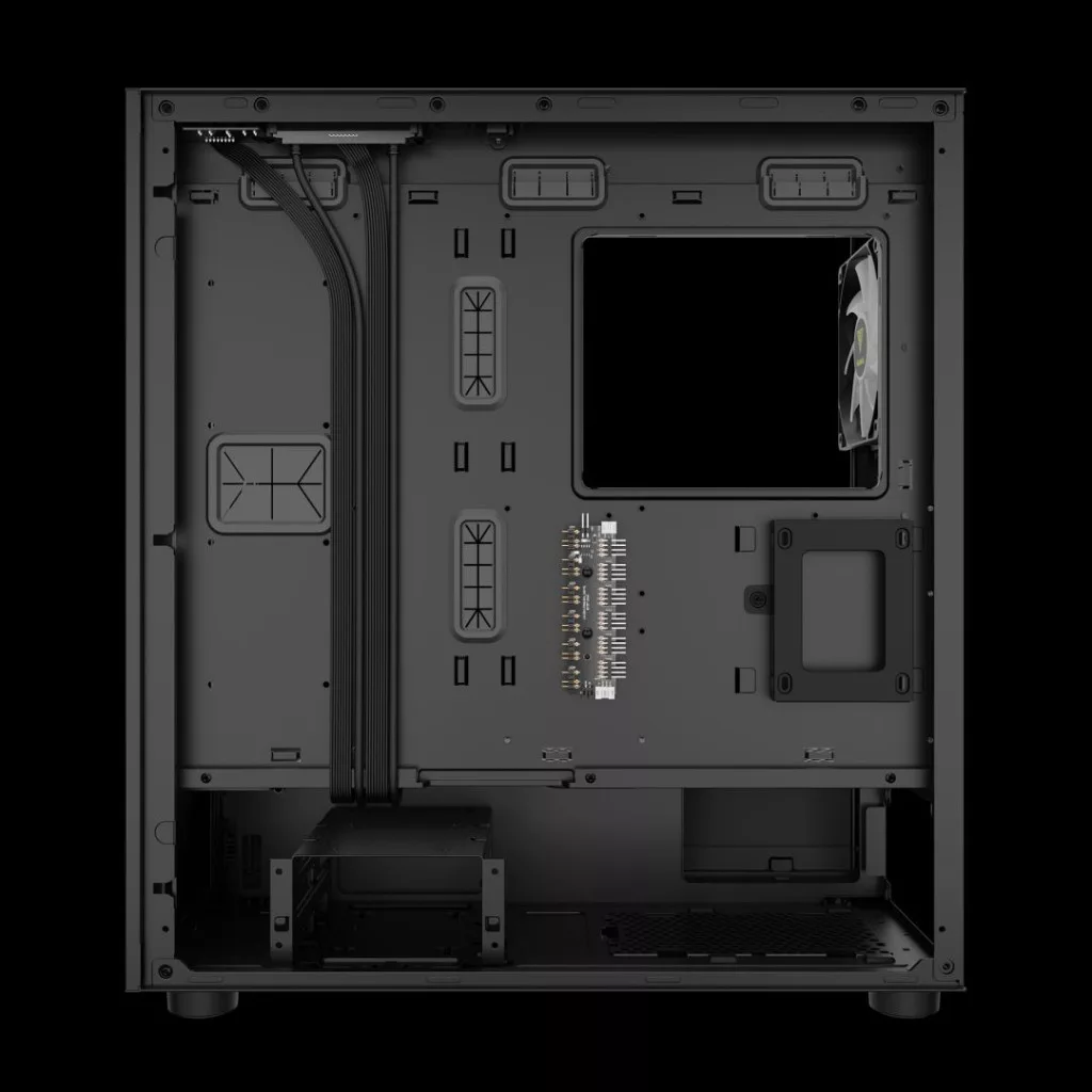 E-ATX, Black, 2x3,5", 3x2,5", 1xUSB3.0, 1xUSB Type-C, Audio, Táp nélkül, 440x230x480mm, Ventilátor:2x14cm, 1x12cm, Tempered glass window, RGB, Gamer