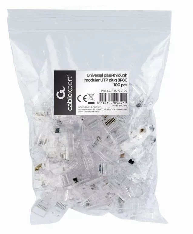 Gembird LC-PTU-01/100 Universal pass-through modular UTP plug 8P8C, 100 pcs per bag