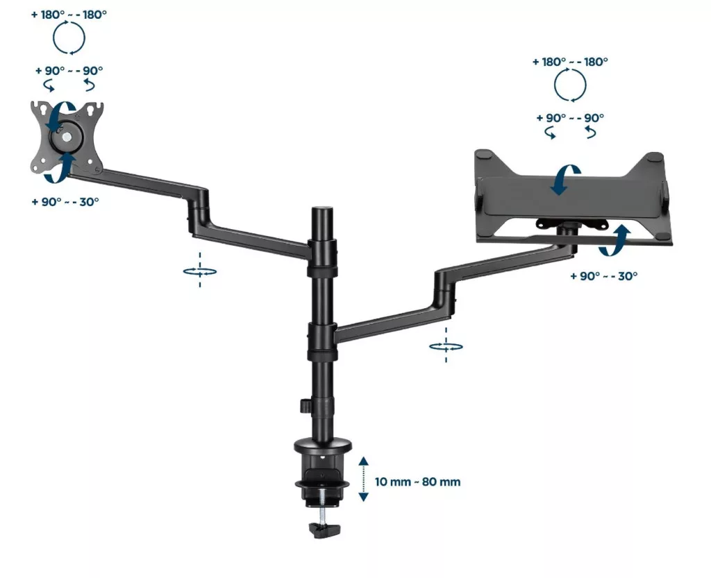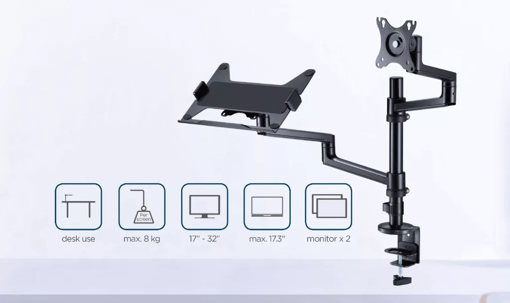 Gembird MA-DA-04 Desk mounted adjustable monitor arm with notebook tray 17"-32" Black